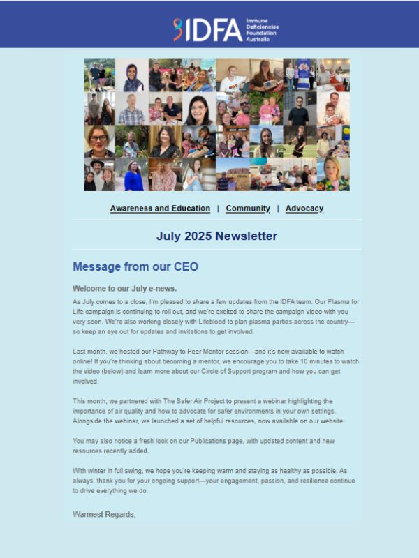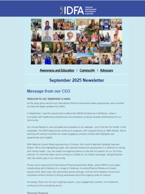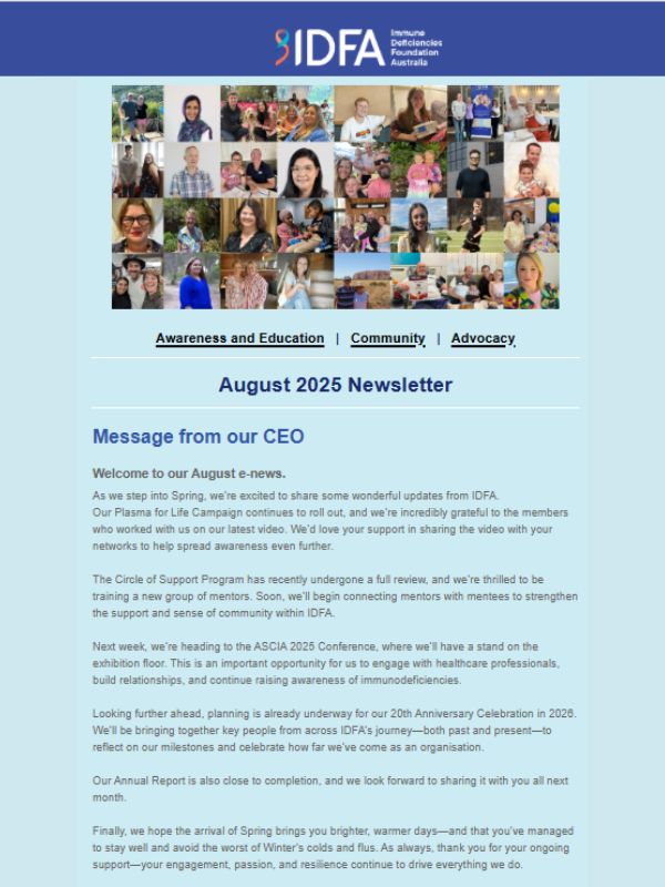 To mark World Primary Immunodeficiency (PI) Week (April 22–29), IDFA launched Stride for Primary Immunodeficiency—a national walking campaign encouraging Australians to take steps in solidarity with those living with this often invisible condition.